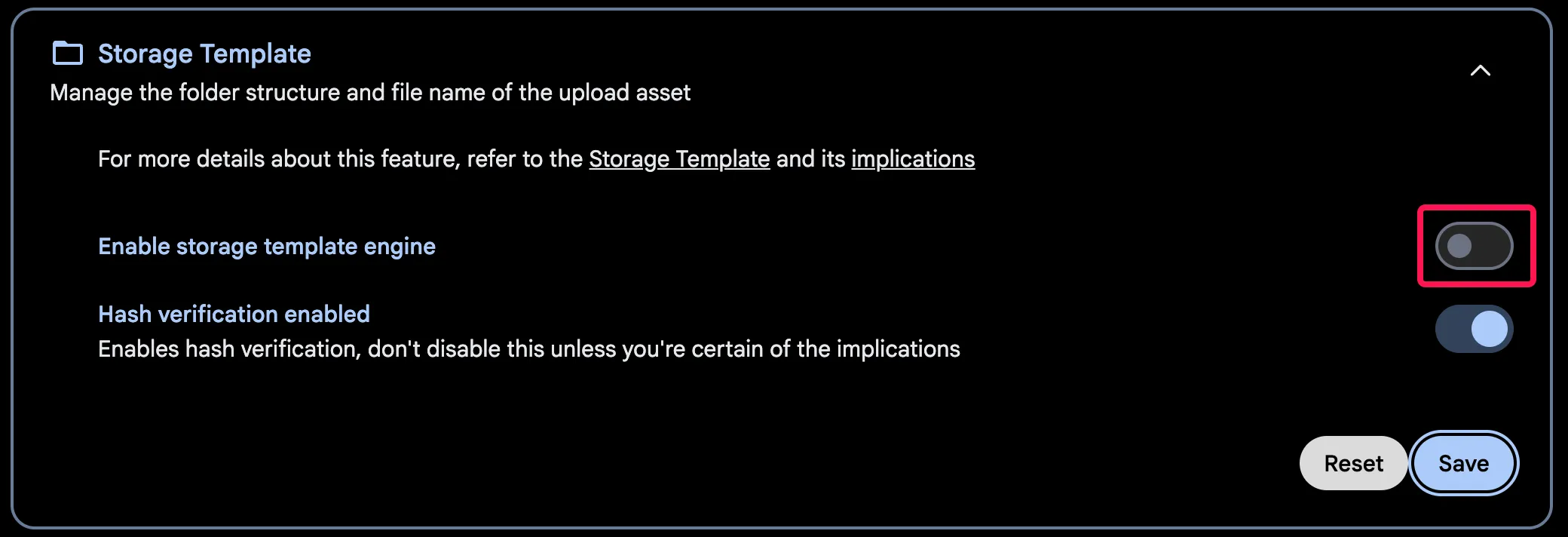 Immich also provides a mechanism to migrate between templates so that if the template you set now doesn't work in the future, you can always migrate all the existing files to the new template. The mechanism is run as a job on the Job page.